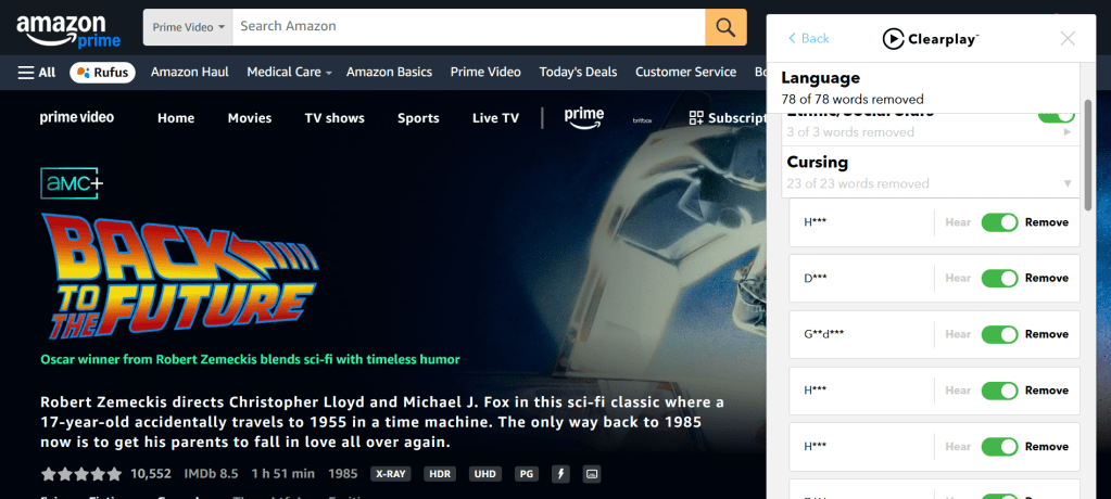 Here is what it looks like to use Clearplay, for instance.